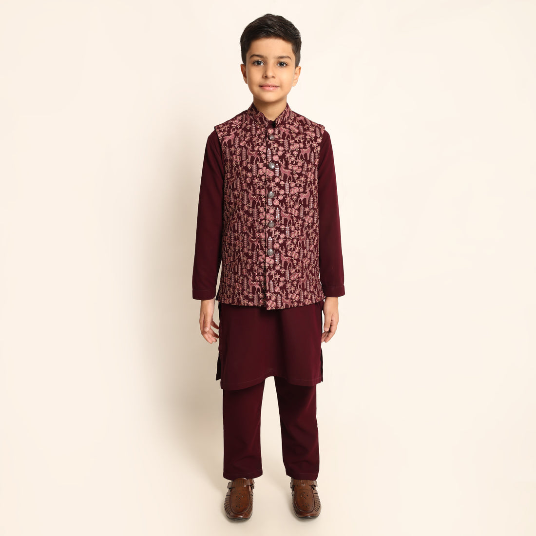 Fabric - Georgette Color - Wine Work - Motif thread work embroidery Fully Fused Set...
