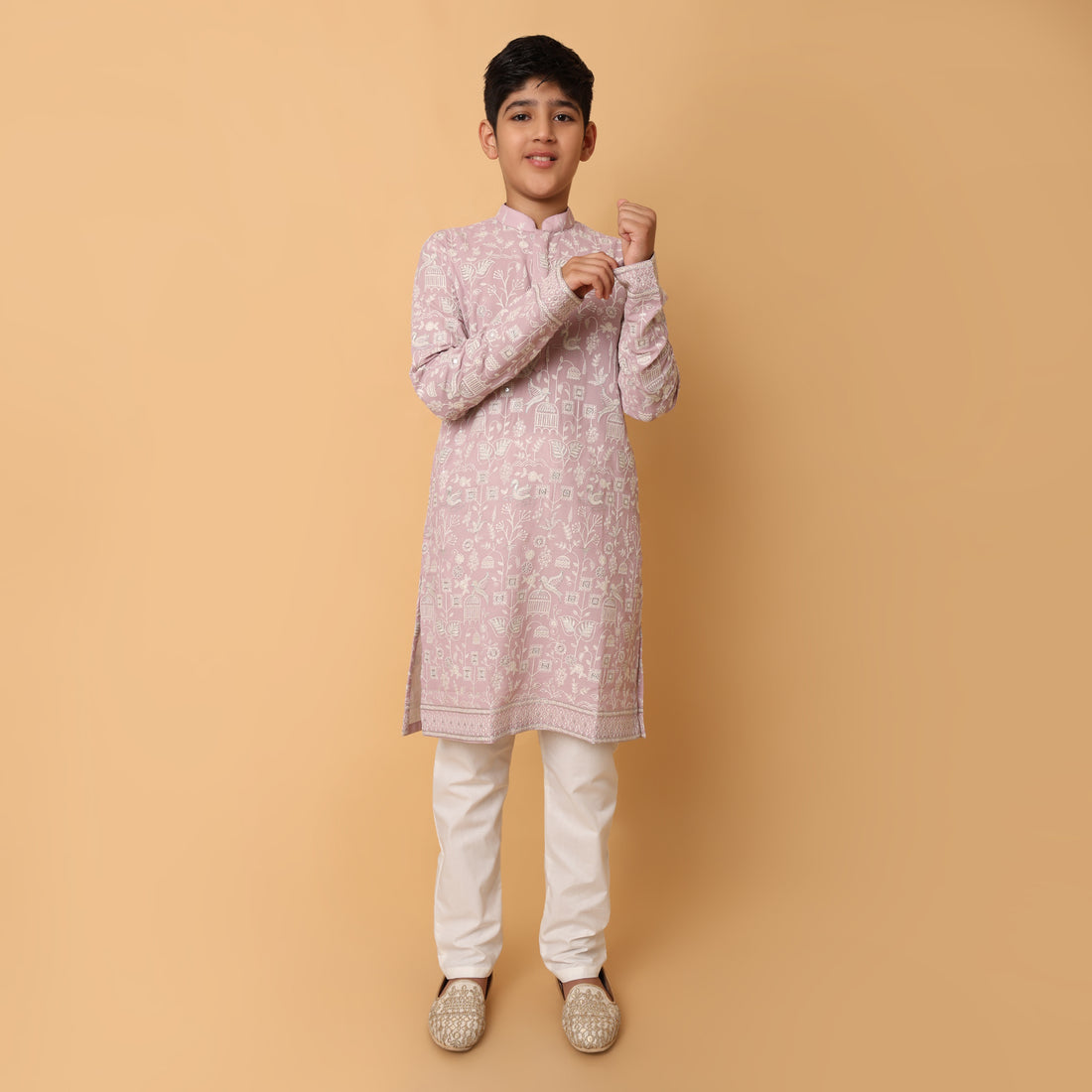 Fabric - Georgette Color - Lilac Work - White Motif thread work embroidery Fully Fused...
