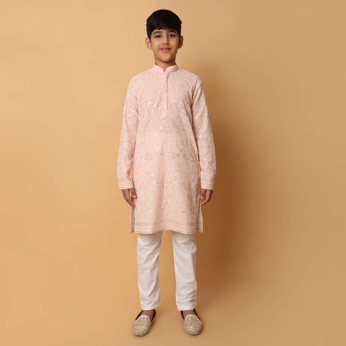 Fabric - Georgette Color - Light Pink Fully Fused Set of 3 ( Kurta, Jacket...